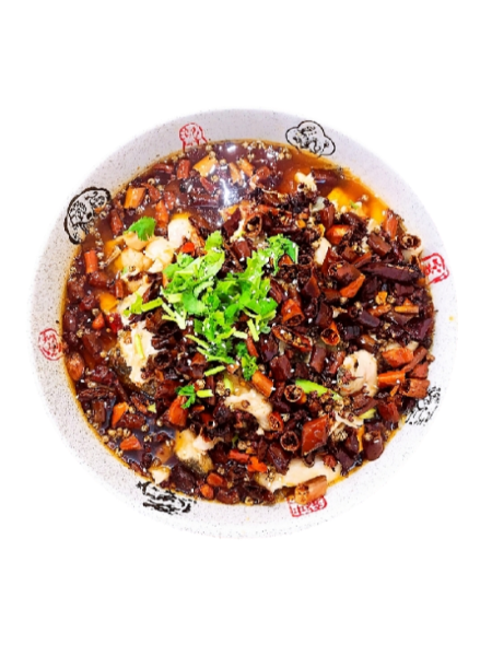 Le poisson mixé chaud-froid est un plat signature du Sichuan qui incarne le « mélange de chaud et de froid ». Le poisson est imprégné de saveur tant qu’il est encore chaud, puis mélangé à une sauce froide et multicouche, créant un contraste saisissant à la fois en température et en goût. La version aux ciboulettes met en évidence la fraîcheur piquante et croustillante des ciboulettes ; la version aux piments frais souligne la chaleur vive des piments millet rouge et vert, associée à l’arôme piquant du gingembre et de l’ail ; la version à la sauce de soja s’appuie sur l’umami riche de la sauce de soja pour poisson vapeur et la profondeur des saveurs de soja fermenté. Toutes trois s’appuient sur la douceur naturelle du poisson, pour obtenir un profil « frais sans odeur de poisson, épicé sans rudesse, et aromatique sans gras excessif ».