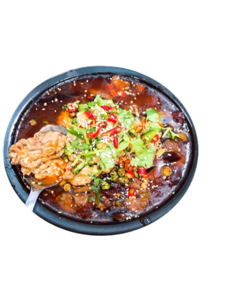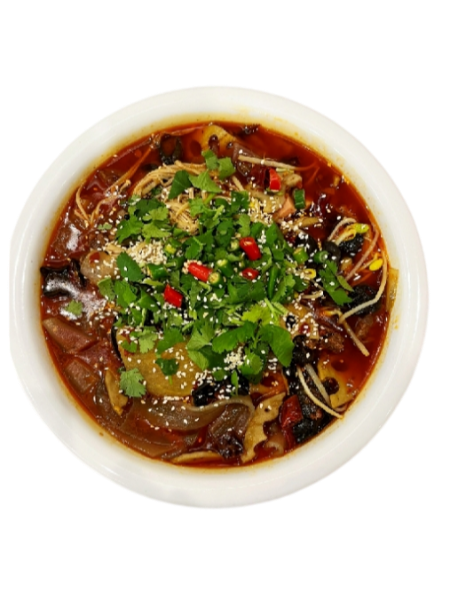 Le bouillon d’or bouillonne, envoyant une vague d’arômes aigres, piquants et frais directement dans votre nez ! Le bœuf est tendre et juteux, fondant dans la bouche sans se coincer entre les dents ; les champignons enoki sont croustillants et tendres, imprégnés du bouillon riche. Une bouchée dévoile une symphonie de cinq saveurs : aigre, piquant, frais, aromatique et onctueux. Il stimule l’appétit sans irriter l’estomac, s’accorde parfaitement avec le riz, et réchauffe à la fois le corps et le cœur !Entré