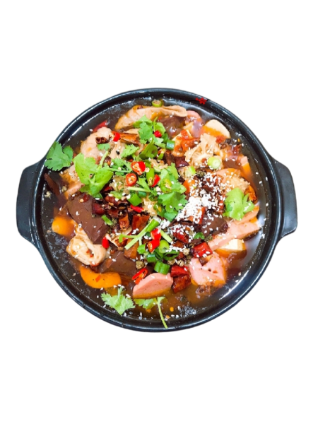 (pot chaud épicé bouillir: pâté de porc/cerveau de porc/tranche de bœuf/poitrines de bceuf/ légumes...)Pâté de porc 6,00 €