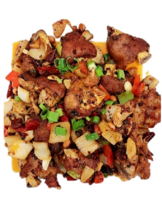 Cervelle de porc à l’ancienne : une délicatesse onctueuse et aromatique élaborée au fil du temps. Tendre comme de la crème, elle fond dans la bouche, imprégnée de l’arôme persistant de la vieille sauce braisée ou du feu de charbon. La saveur anesthésiante du poivre de Sichuan pénètre la chair, épicée mais sans être écrasante. Une seule bouchée apporte un arrière-goût sucré, remplissant votre bouche de la chaleur et du charme rustique des étals de cuisine de rue de l’ancien Chengdu.Augmenter Un Cerveau de Porc 8,80 €